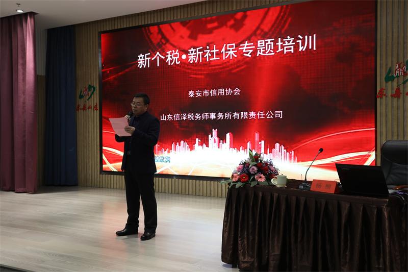 为了使企业精准获取“个税”与“社保”最新政策与动向,精准分析个人所得税和社保中的风险防范要点,提前规避风险,社保归税后,构建企业合理的工资薪金与个税风险管理框架,搭建个税、社保新格局下的应对体系。元月18日,由泰安市信用协会主办,山东信泽税务师事务所有限责任公司承办的新个税、新社保专题培训于上午9时正式开始。